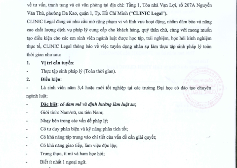 Công ty Luật TNHH CLINIC Legal (“CLINIC Legal”) được thành lập và hoạt động hợp pháp tại Việt Nam theo số 41.02.3472/TP/ĐKHĐ do Sở Tư Pháp Thành phố Hồ Chí Minh cấp.