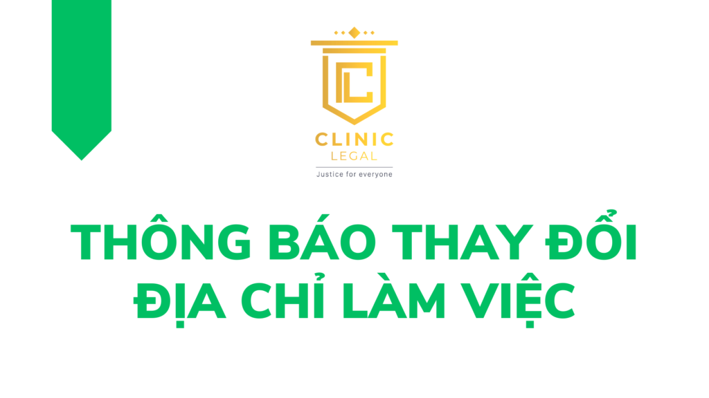 THÔNG BÁO THAY ĐỔI ĐỊA CHỈ LÀM VIỆC Kính gửi: Quý cơ quan, khách hàng và đối tác Lời đầu tiên Công ty Luật TNHH CLINIC Legal (“CLINIC […] 22 Tháng Hai, 2023